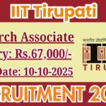 IIT Tirupati Research Associate Recruitment 2025: Apply Online for 20 Posts